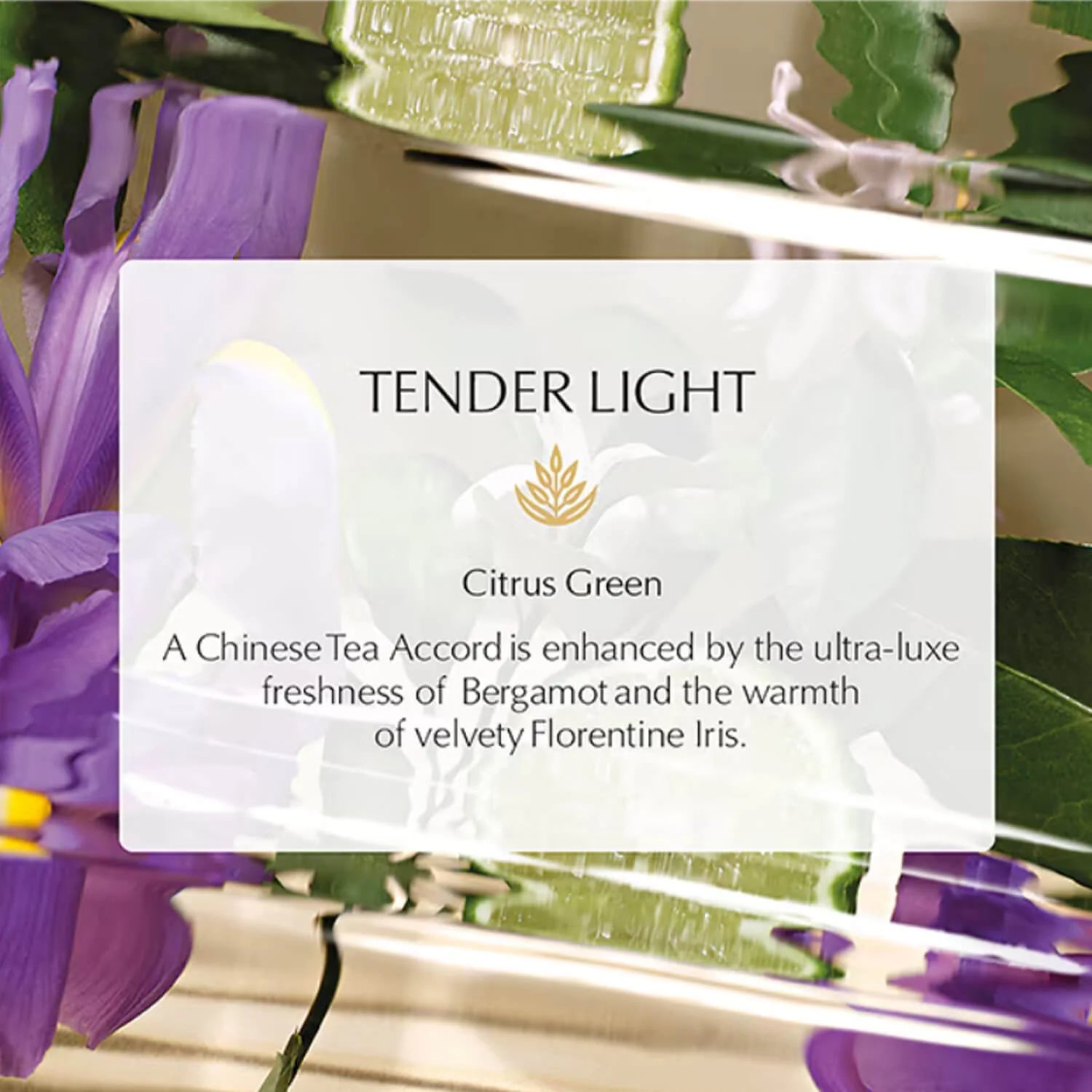 The distinctive fresh scent of an exclusively crafted Chinese Tea Accord is surrounded by the ultra-luxe freshness of Bergamot and warm, velvety Florentine Iris. Inspired by the warmth and joy of sunlight.